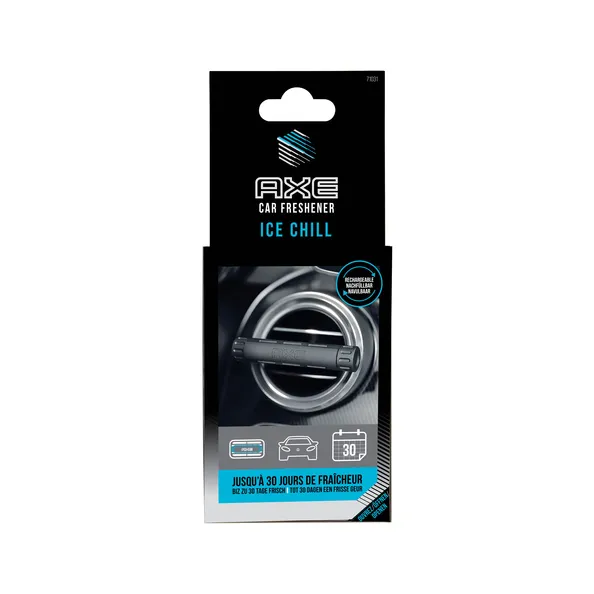 Désodorisant AX Fabriqué pour AX à partir des 6 parfums les plus vendus. Il s'agit d'un support en aluminium qui se clipse dans la grille d'aération et diffuse le parfum à travers les courants d'air.Ce support est livré avec 2 peaux. Les recharges sont également disponibles séparément en 6 parfums différents.