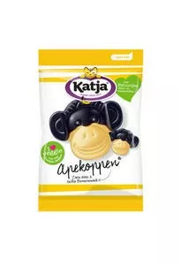 Les têtes de singe Katja ont un museau jaune et une tête noire. Les têtes de singe offrent une délicieuse combinaison de saveurs de réglisse douce et de banane.