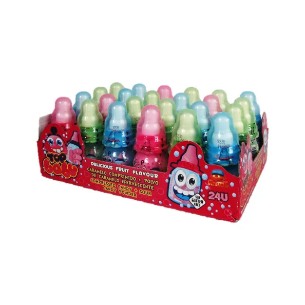 Le biberon Top est une nouveauté amusante qui rend l'heure du goûter encore plus excitante ! Trempez la tétine dans la poudre de sucrerie et savourez les différentes saveurs de fruits (mais toujours acides). La belle boîte de présentation contient 24 biberons de bonbons de différentes couleurs. Lequel est ton préféré?