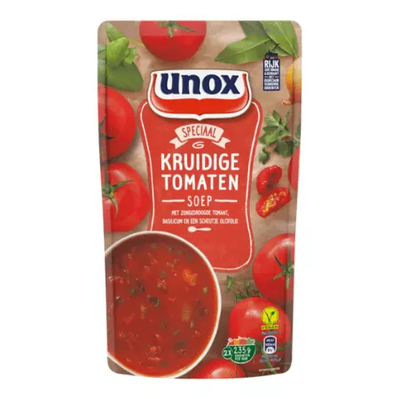Nous vendons le sachet de soupe tomate épicée Unox (5x 570ml) par 5.